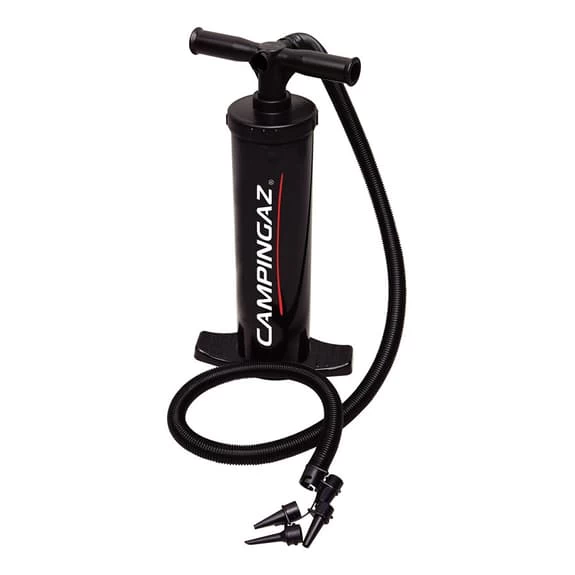 La pompa manuale Campingaz Doppia azione serve per gonfiare e sgonfiare una grande varietà di prodotti. Non bisogna collegarlo alla presa, particolarmente utile se non hai accesso a una presa elettrica. Questo design intelligente crea corrente d’aria sia nel movimento ascendente sia in quello discendente. Include adattatori pico, boston e valvola a doppio serraggio. Compatta e facile da maneggiare.