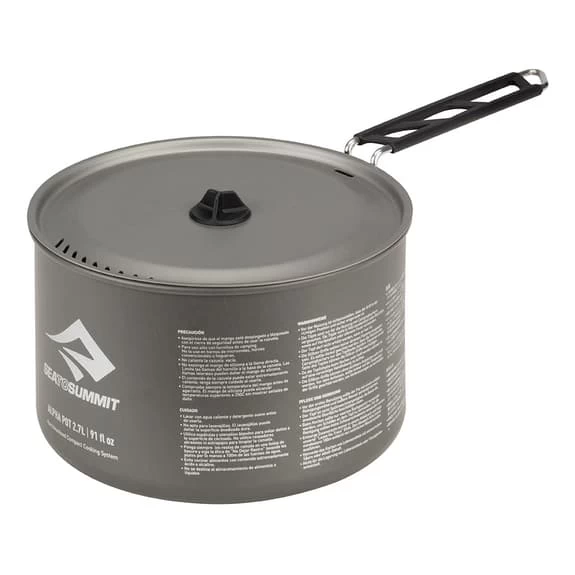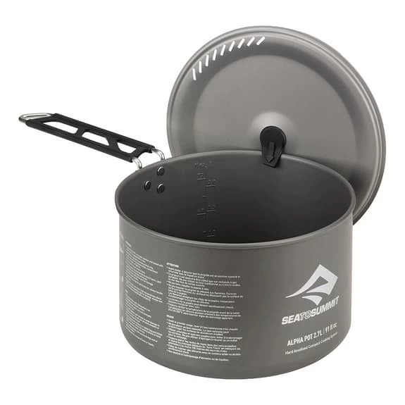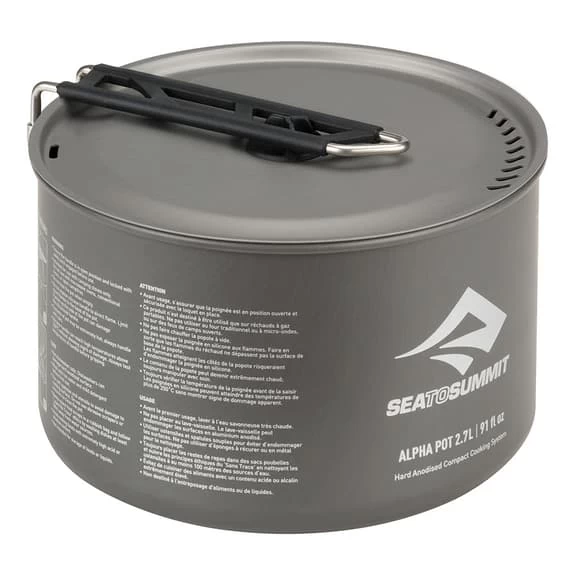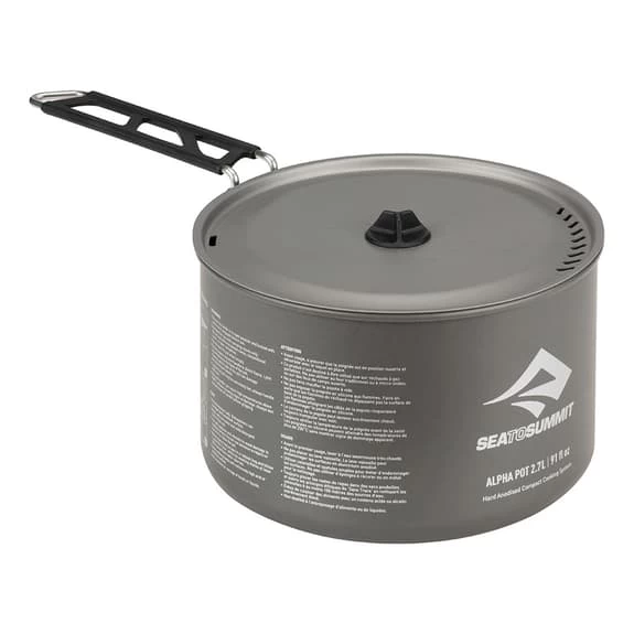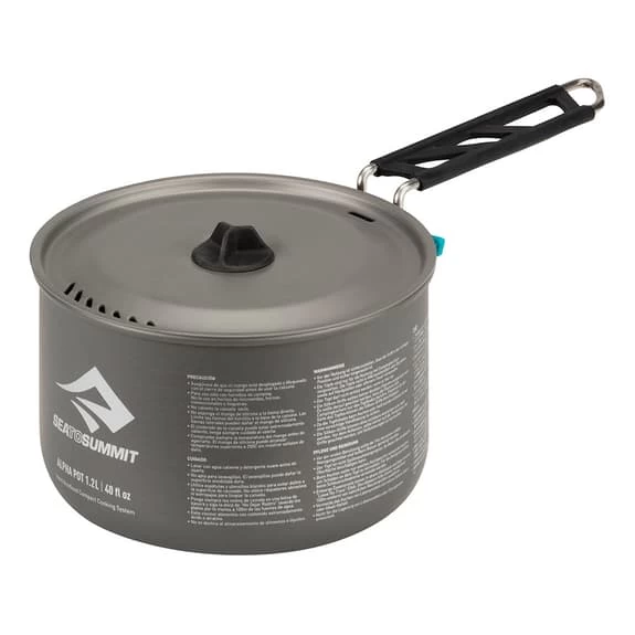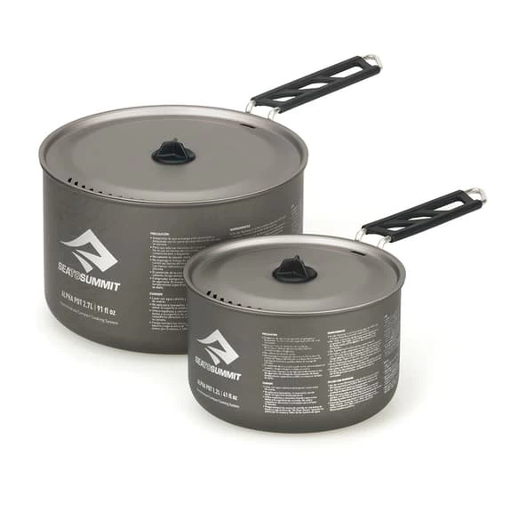 Set da due pentole Sea to Summit da 1.2 e 2.7L, resistenti e leggere, realizzate in alluminio anodizzato. Quella più piccola può essere riposta dentro a quella più grande per risparmiare spazio. Manico adattabile con blocco di sicurezza